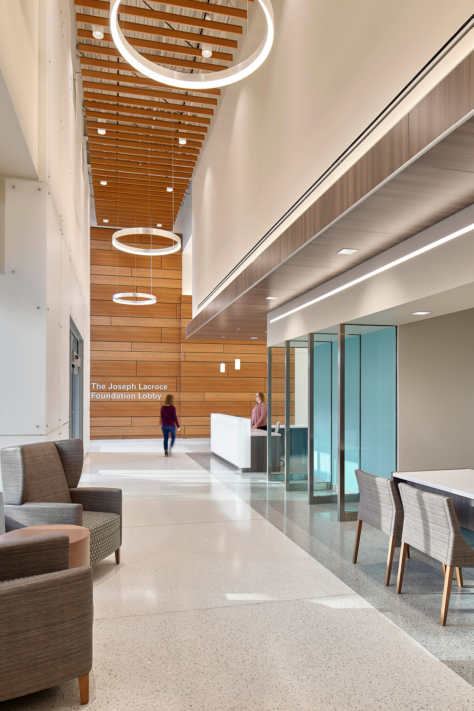 - The Virtua Samson Cancer Center was designed with wayfinding in mind. The Main Gallery can be seen from the exterior by way of a full-height glass opening, allowing visitors to find their bearings inside and outside of the building. Photo courtesy of FCA