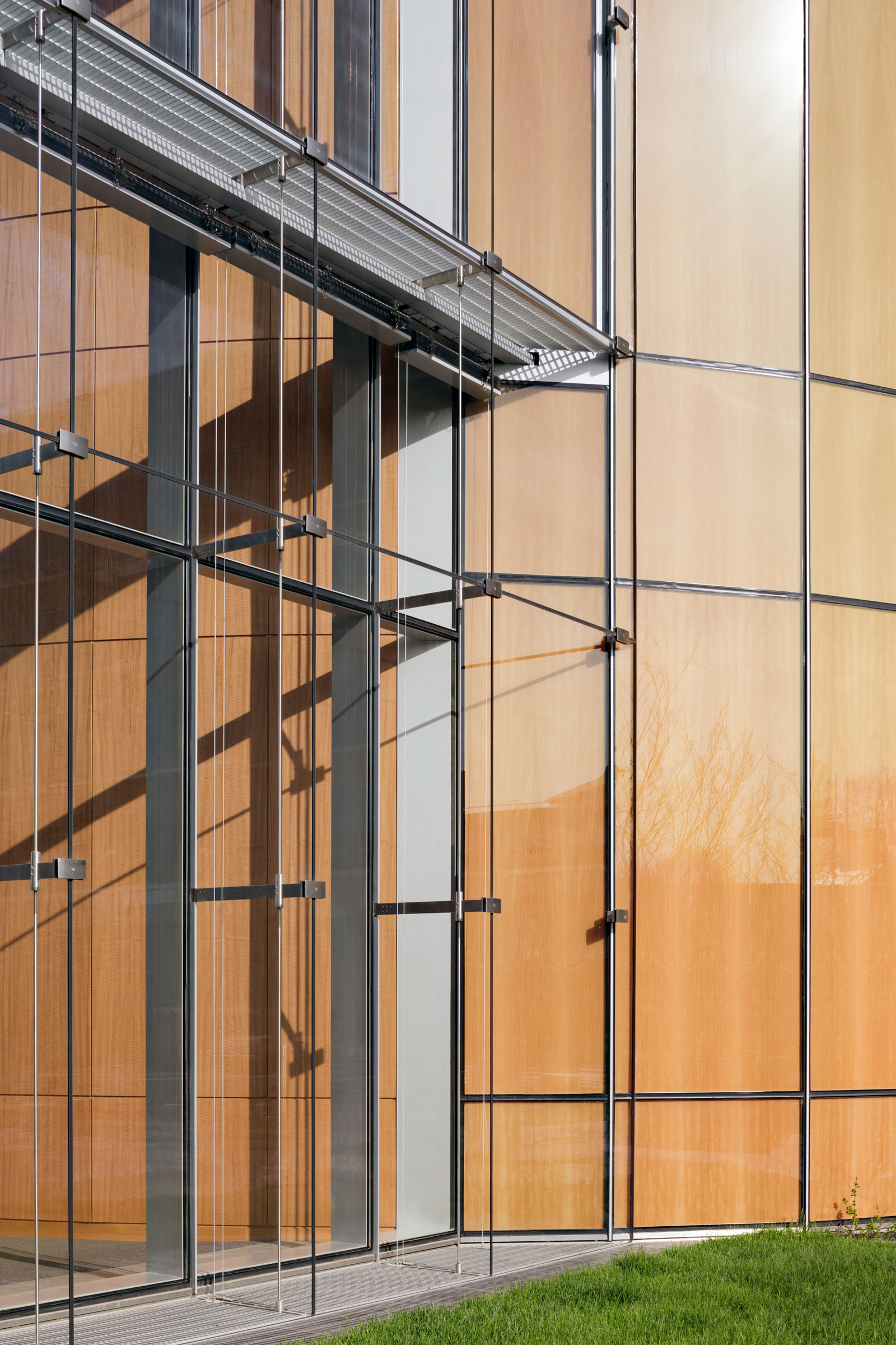 Alice is among GGI’s most impressive products. With it GGI provided a 37-foot tall, double-skinned curtain wall with vented glass layers set 36 inches apart at Tata Hall at Harvard Business School. The design functions as a thermal blanket in colder temperatures and creates a cooling convection in warmer weather. It helped the project earn LEED Platinum. GGI matched wood that the design team sourced from Africa for the project.