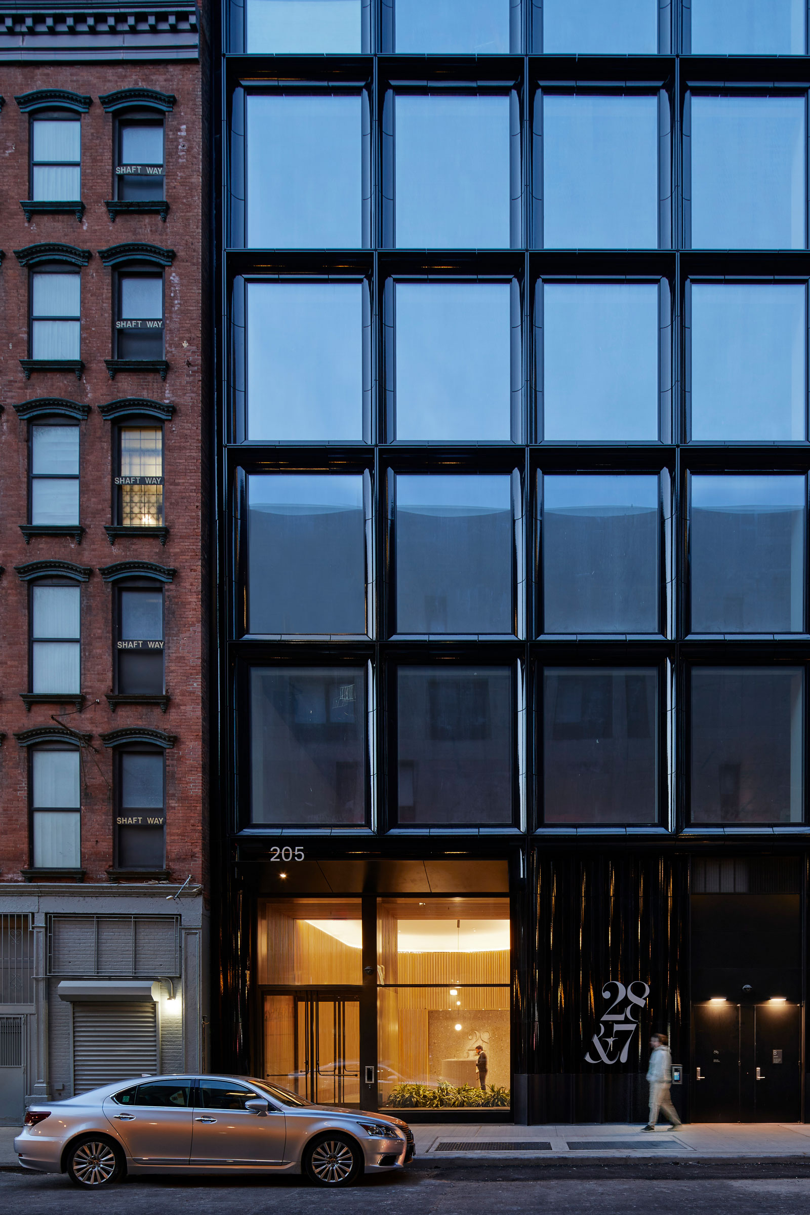 A classic tuxedo, a little black dress, an elegant building facade. One of these things is not like the others, but it’s the feeling of a luxurious, understated garment that Michael Kirchmann and his colleagues were after with 28&7. The new Class-A boutique office building in the Chelsea neighborhood of Manhattan had to be eye-catching while fitting in with its environment. It also had to be high-performing. The solution, in part, was black glazed terra-cotta from Shildan Group.