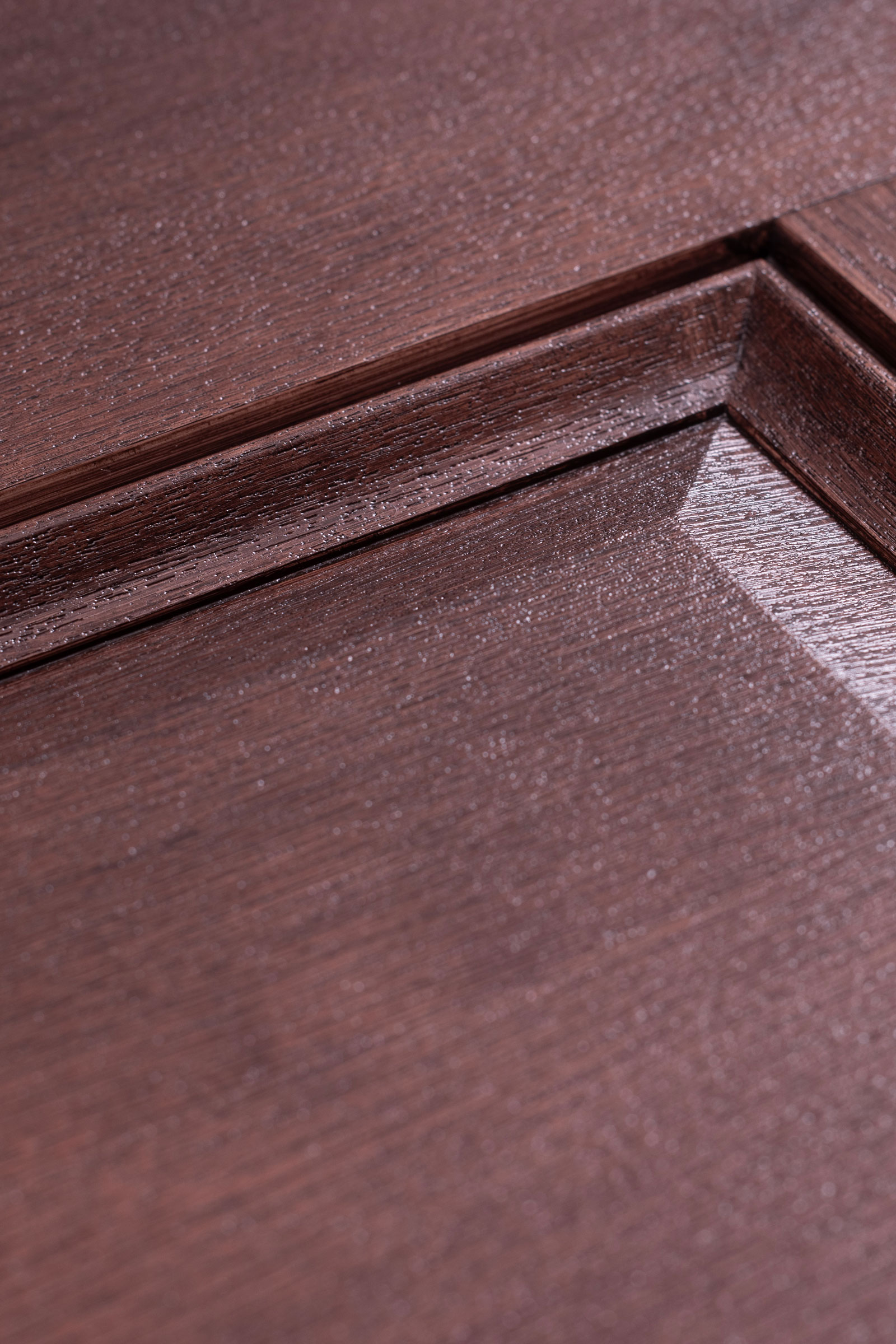 While natural wood has a beautiful grain, color, and weight, it tends to be more expensive and prone to warping. Over time it may not form as tight of a seal with its frame, impacting the energy use and thermal comfort of a home. Quinnette estimates that only 5 to 10% of new doors are made from wood for these reasons.