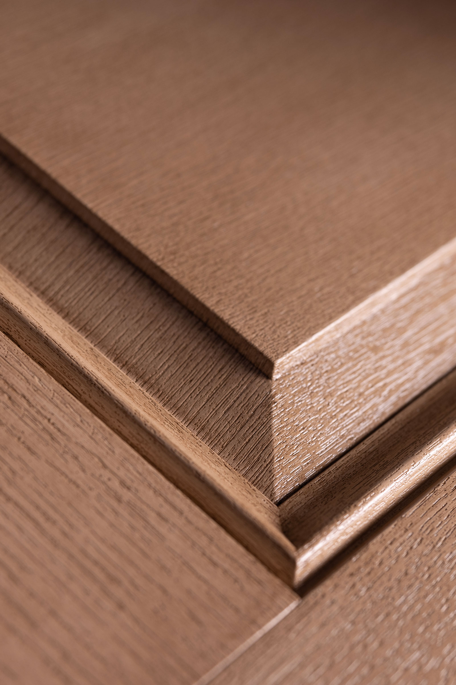 Fiberglass can be treated to resemble solid wood for a sliver of the price tag. ODL went to great lengths to emulate the warmth and texture of wood with its fiberglass Rift Cut line and even created a wooden door model to ensure the texture and staining were just right. “From a curb perspective it’s really indistinguishable whether you have a fiberglass door or a wood door,” Quinnette says.
