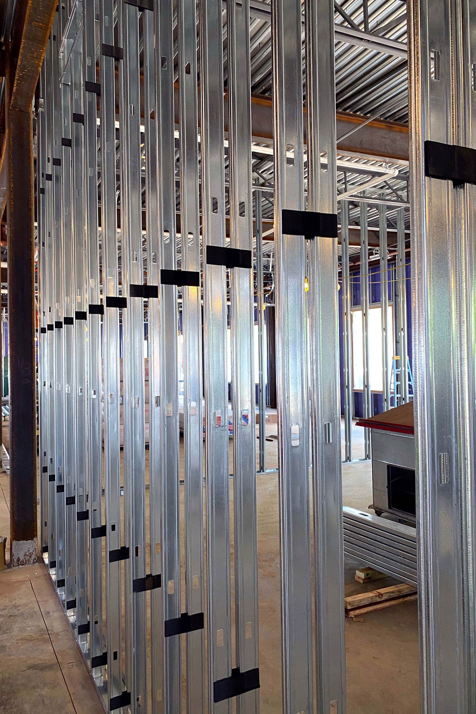 And the fact that cold-formed steel studs have gotten lighter means that instead of needing two workers to lift a tall stud into place, that process now only requires one, further cutting down on labor.
