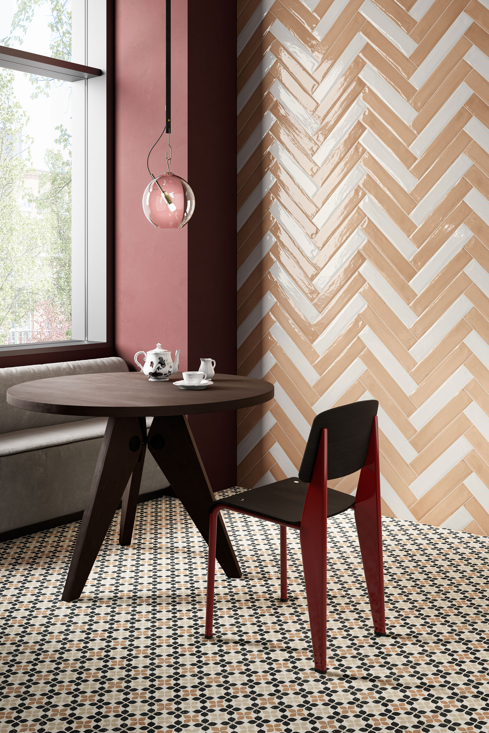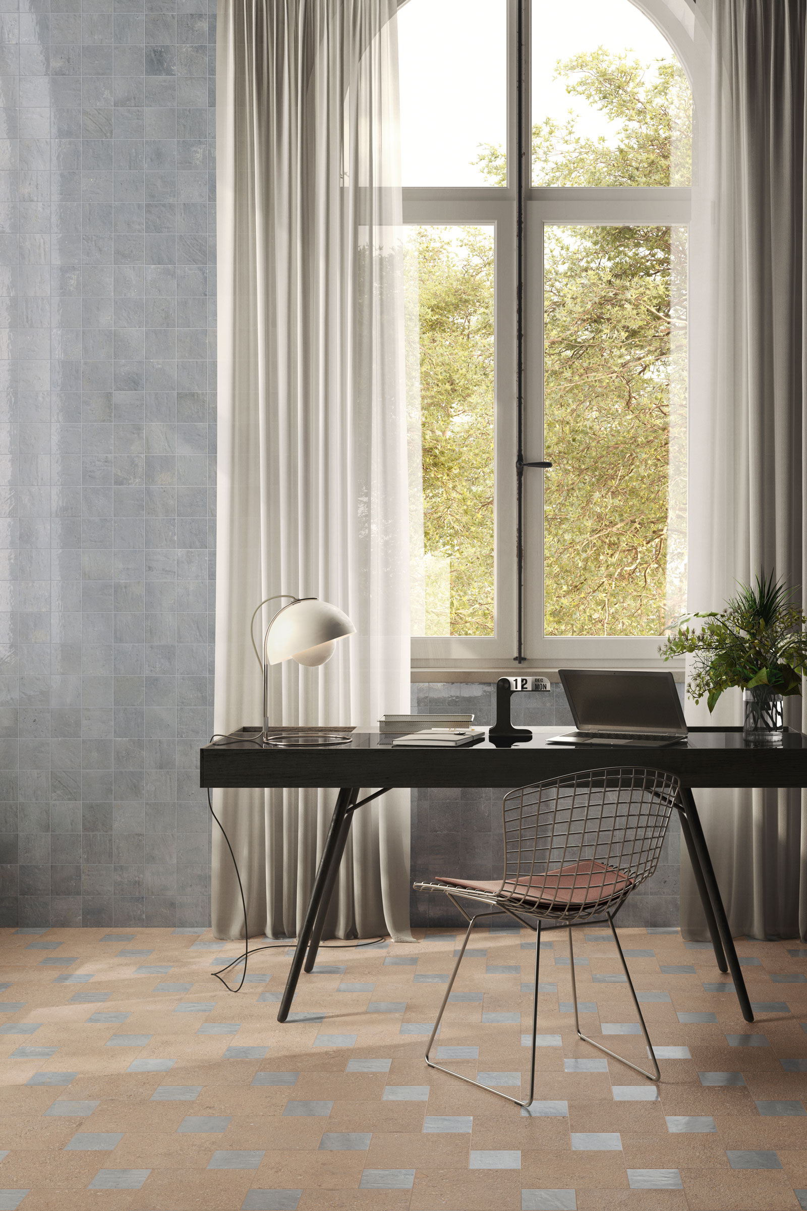 This collection allows designers to bring life to floors with a mix of color and pattern with small size tiles. Ceramica Faetano produces small-size cement and ceramic tiles with original designs for a strong emotional impact. Irregular color dripping leaves a slightly shaded, barely wavy, three-dimensional surface. Small flakes of marble and glass find their elegant geometric composition in space, flanked by a brick format with understated pastel tones.