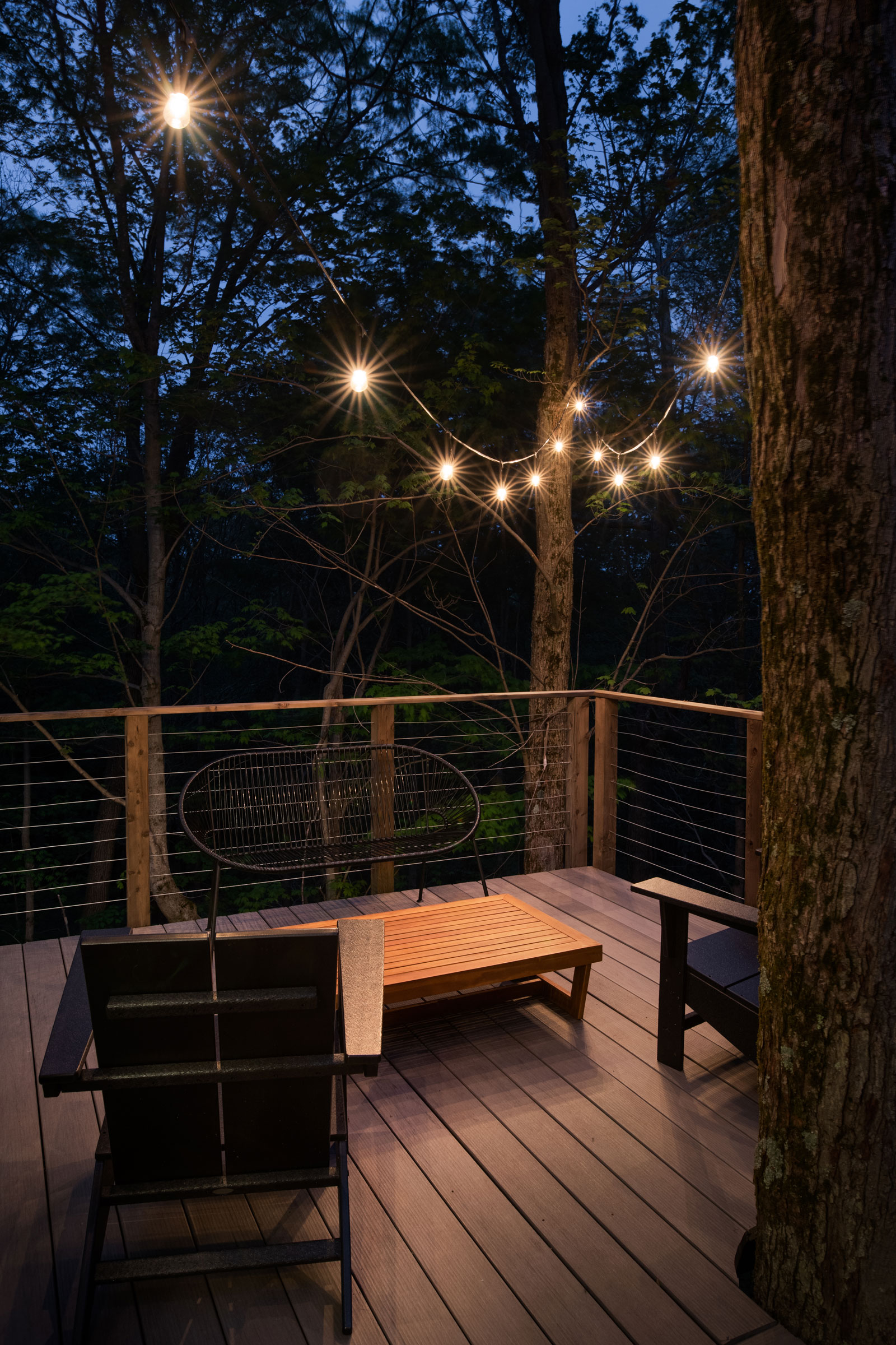 The decks are framed with treated wood, timbertech composite was used for boards, and western red cedar again used for all the railings and stained with a naturally aging product called Eco Wood.