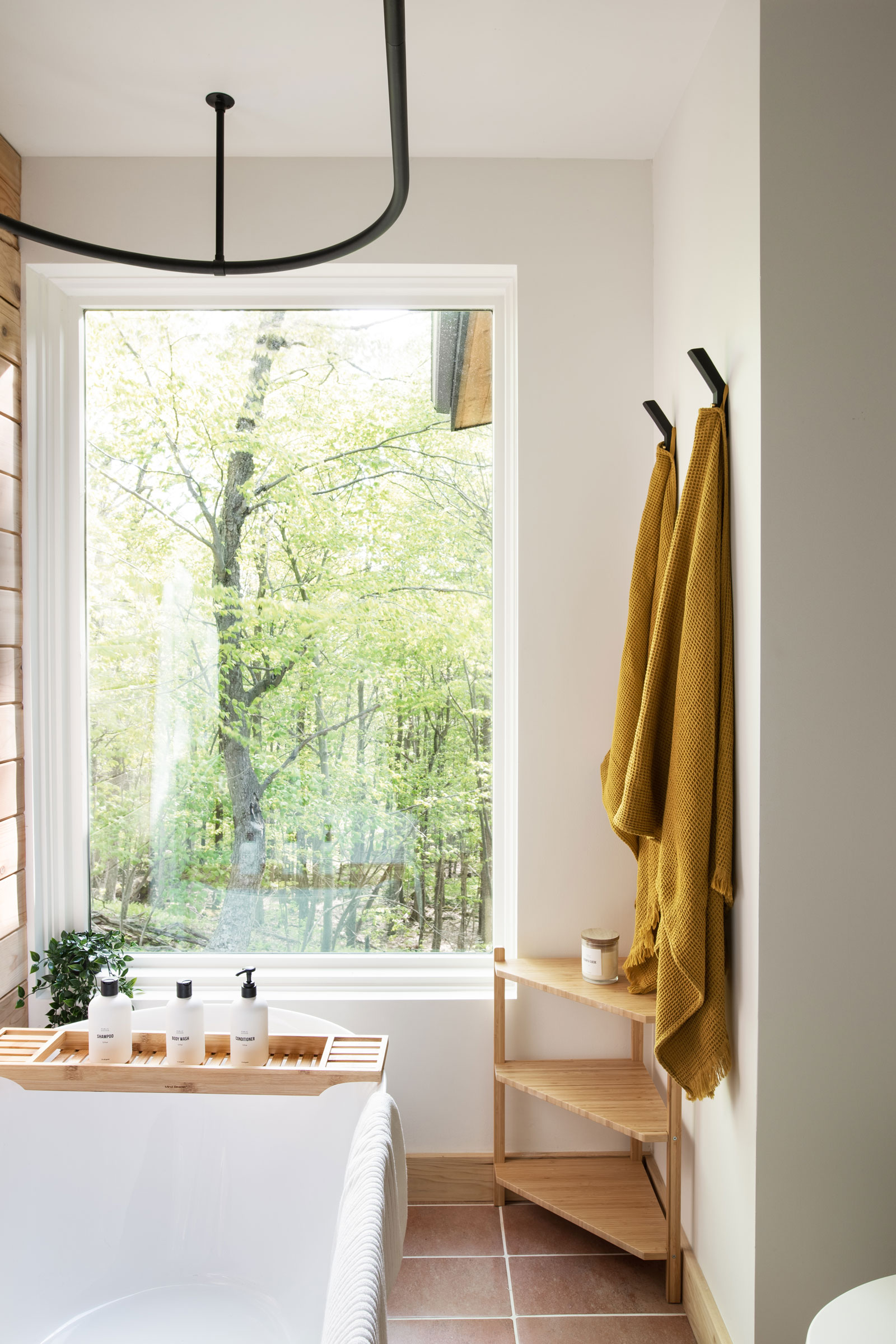 The interior design strikes a balance between Scandinavian and mid-century style, for a warm, clean, cabin feel. Photo by Kaarsten Harris