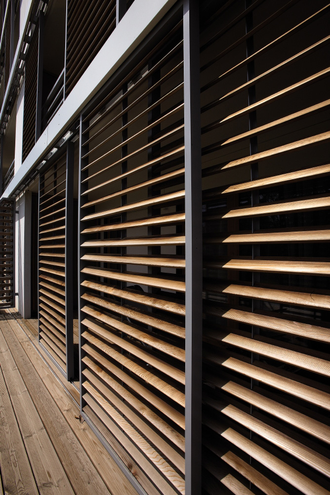 Cladding can be placed on exterior and interior facades and, like the blades on Renson’s louvered roofs and loggia doors, allows an adjustable freeflow of fresh air without having to give up privacy.
