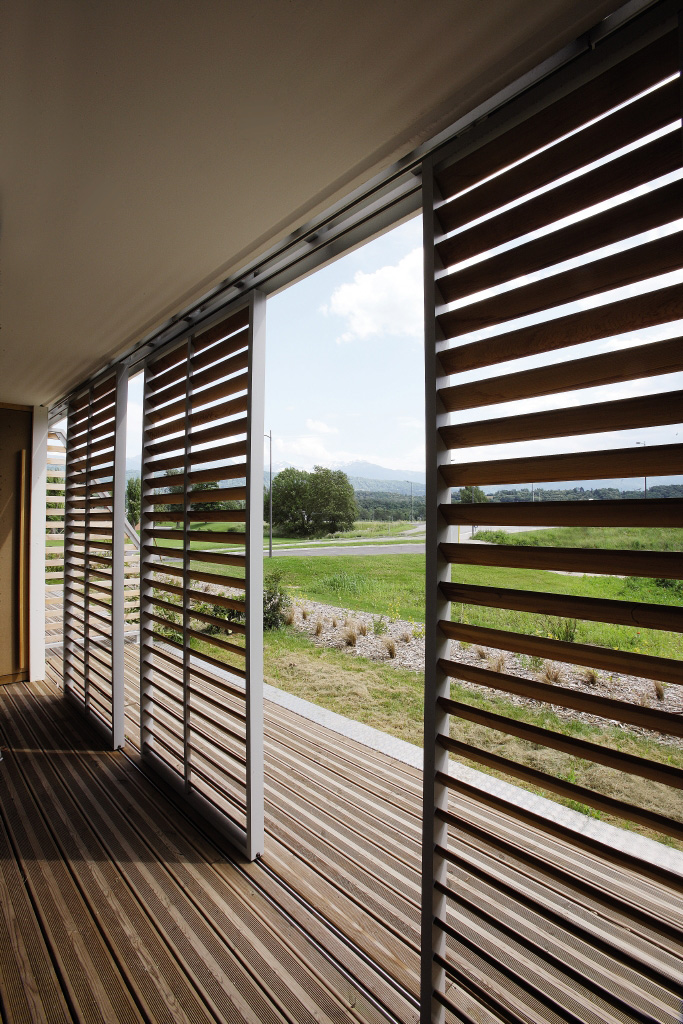 - The sliding panels can be slid in front of the window in warm weather, automatically or manually. Photo courtesy of Renson