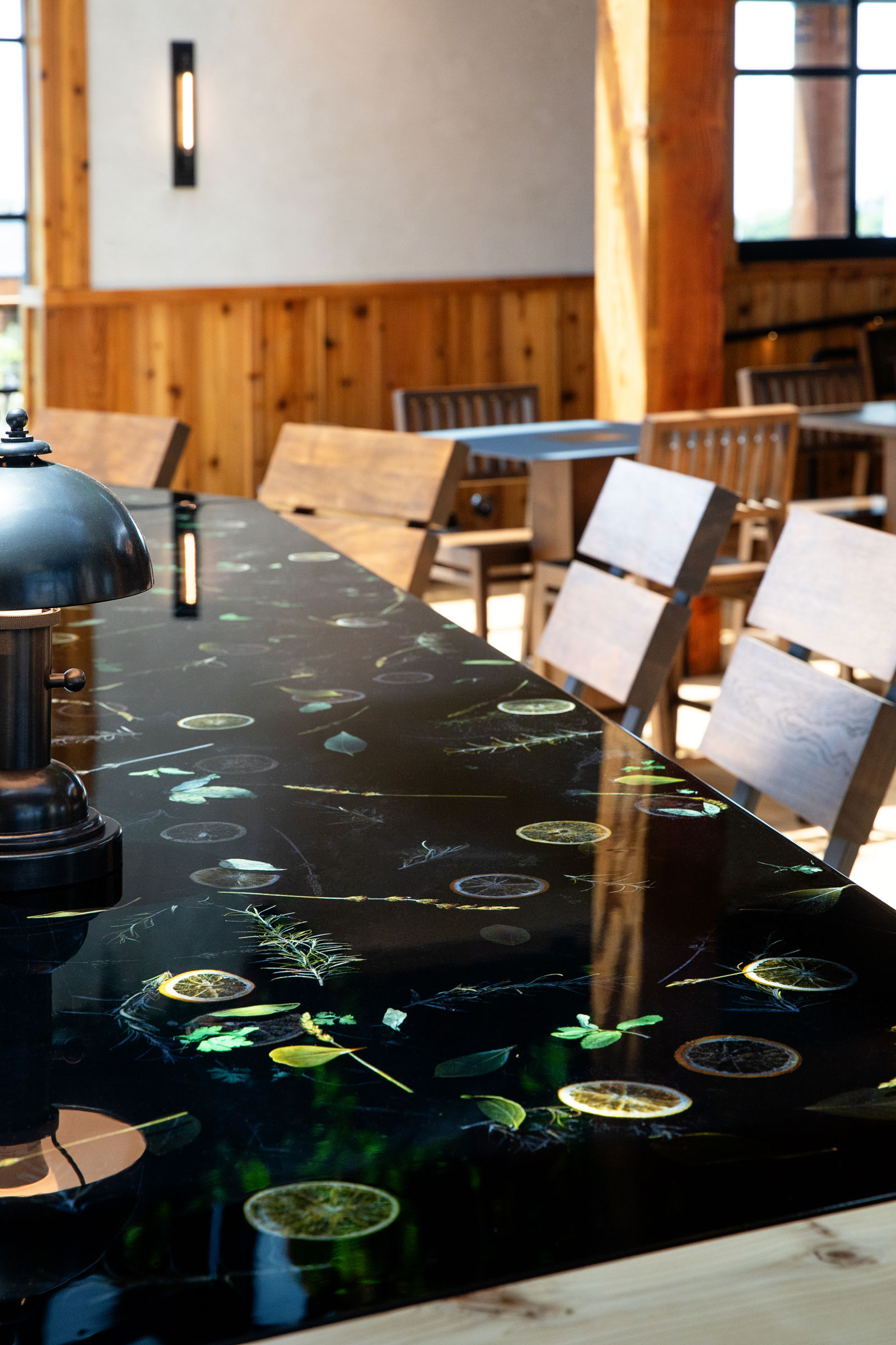 One such example is a eucalyptus tree, originally slated for removal in a nearby community, that was transplanted to a play area within Fox Point Farms. It’s a symbolic gesture that speaks to the project’s emphasis on sustainability and deep sense of place. Even the tabletops at the restaurant feature herb-infused resin, bringing the farm-to-table concept to life.