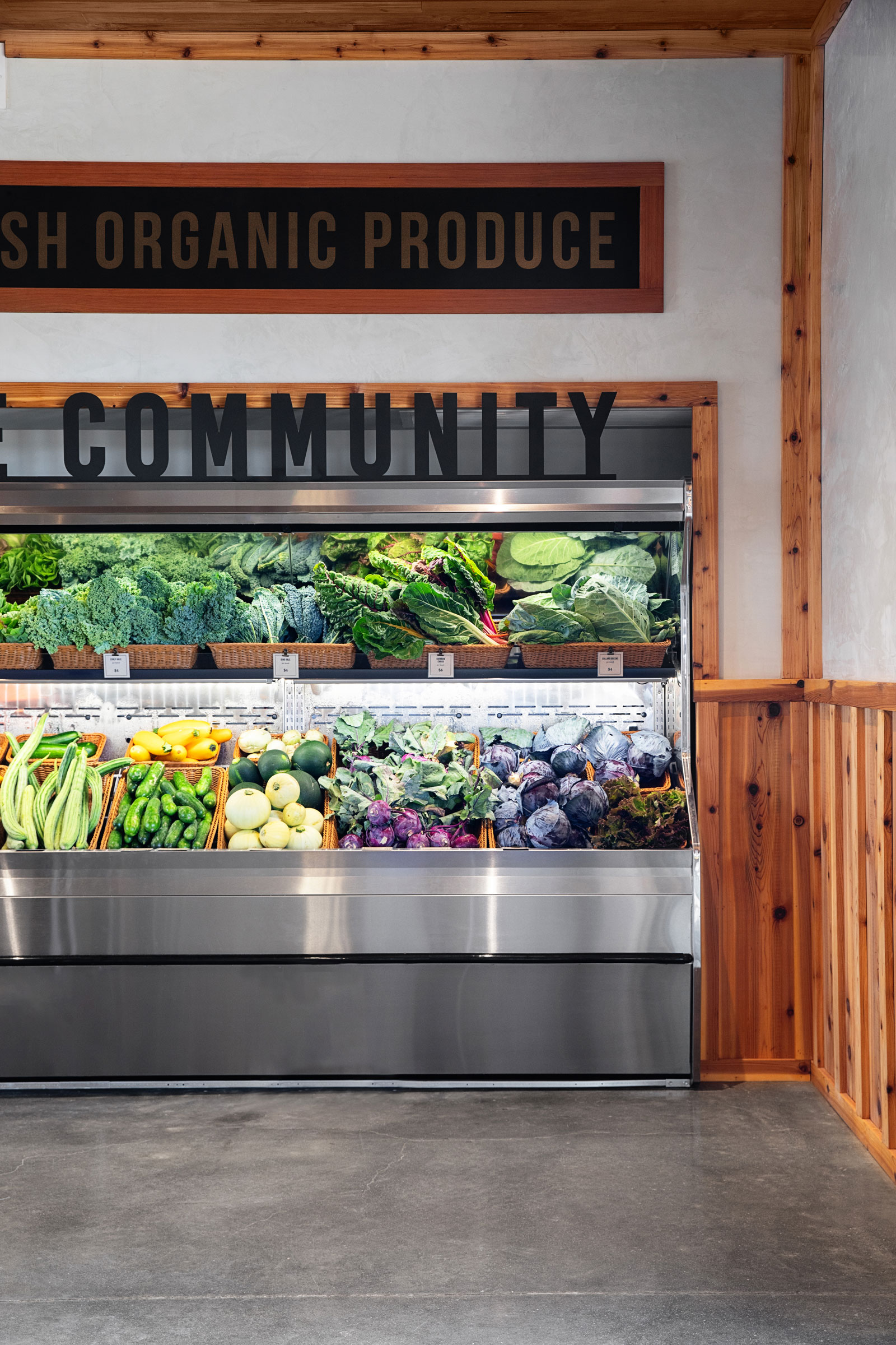 The project’s 8,000-square-foot retail and dining structure is a prime example of this. Blending a traditional California-style barn with a contemporary-style greenhouse, the Western red cedar–clad building houses a market and cafe on the first floor and a zero-waste restaurant on the second. Large glass panels flood the space with natural light and create a visual link to the farmland outside.