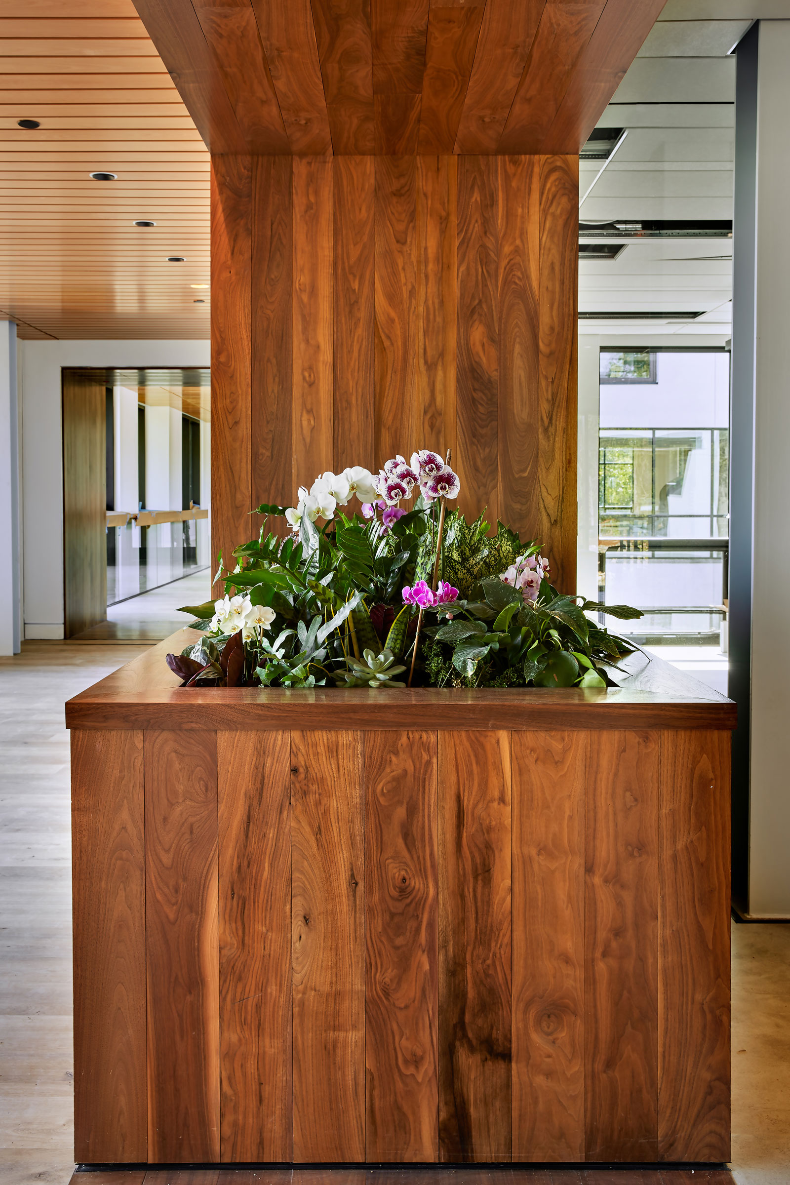 The new building, which will also meet strict Living Building Challenge standards, is designed to make the most of a dense, rocky site. It serves as an oasis for employees and visitors alike, as it’s a short distance from the highway but a world away, with calming design elements like a water wall that masks highway noise and abundant art you’ll notice from the moment you drive up.