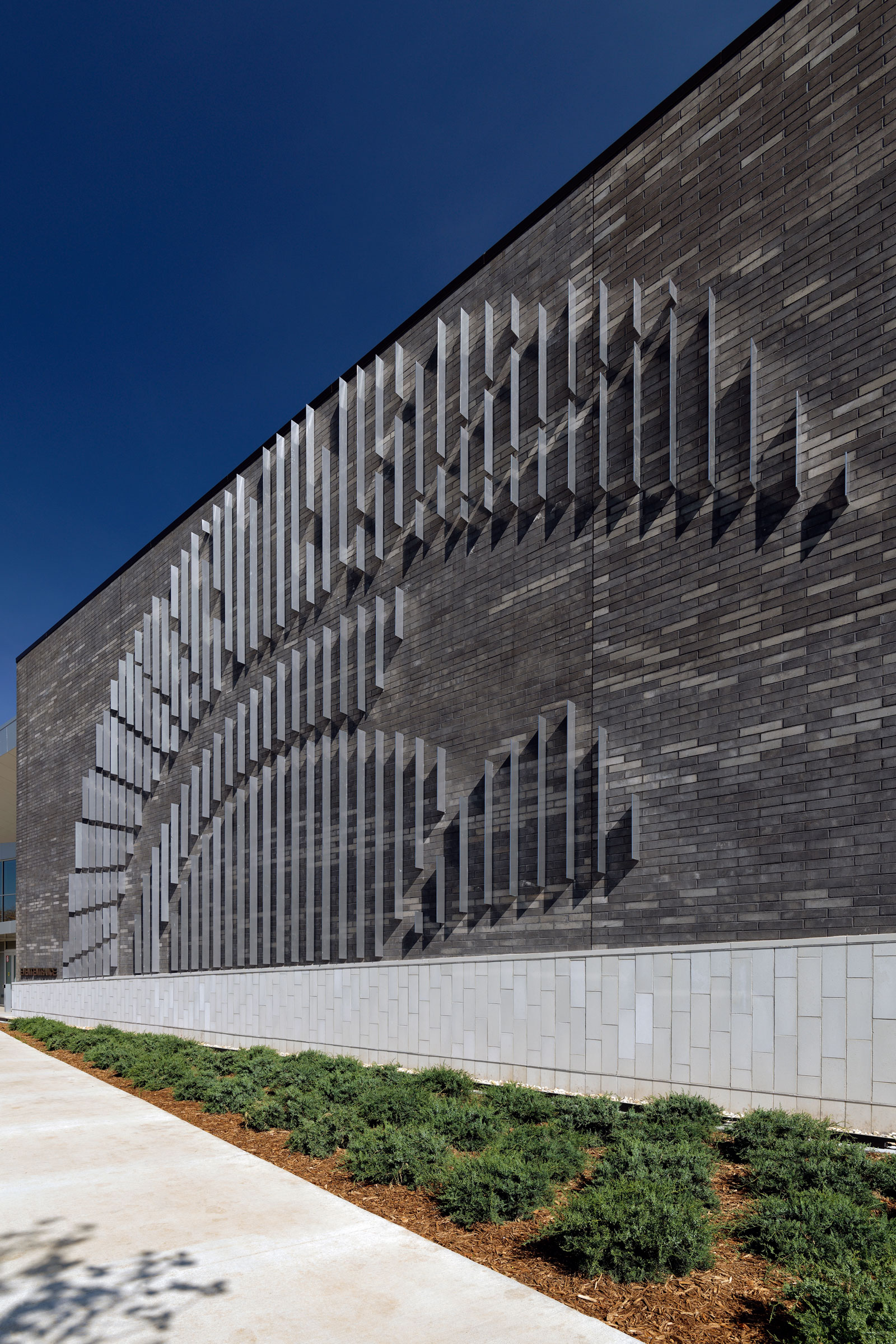 Ludowici’s NeXclad is a versatile cladding solution that offers installation options, depending on the project. The direct-to-sheathing option was chosen as part of the specifications for the school, as it provided a substantial cost savings. Direct-to-sheathing can be installed with rainscreen framing like a rail or girt system. This water shedding system, which includes a drainage mat, two stainless steel clips, and mechanical fasteners, offers enhanced water management and durability and increases the building’s visual impact by between 50 to 70%.