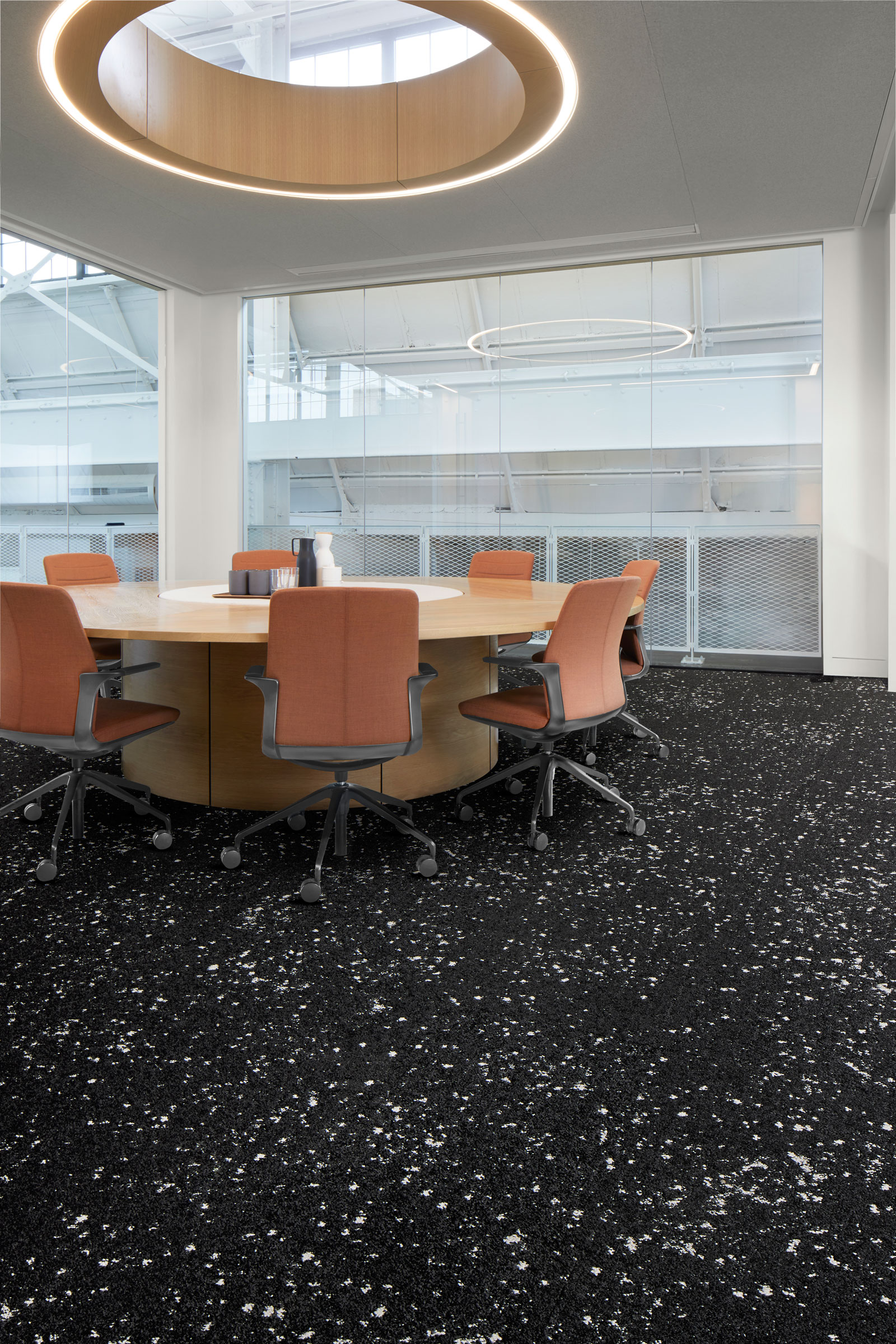 “This collection is really inspired by outer space,” says Erin Jende, director of marketing strategy and activation for Americas at Interface, a top flooring manufacturer who’s also led with sustainable designs since its founding. With names like Meteor, Lunar Landing, and Endless Orbit, the collection provides out-of-this-world looks at home in any space, from hospitality to commercial to residential.