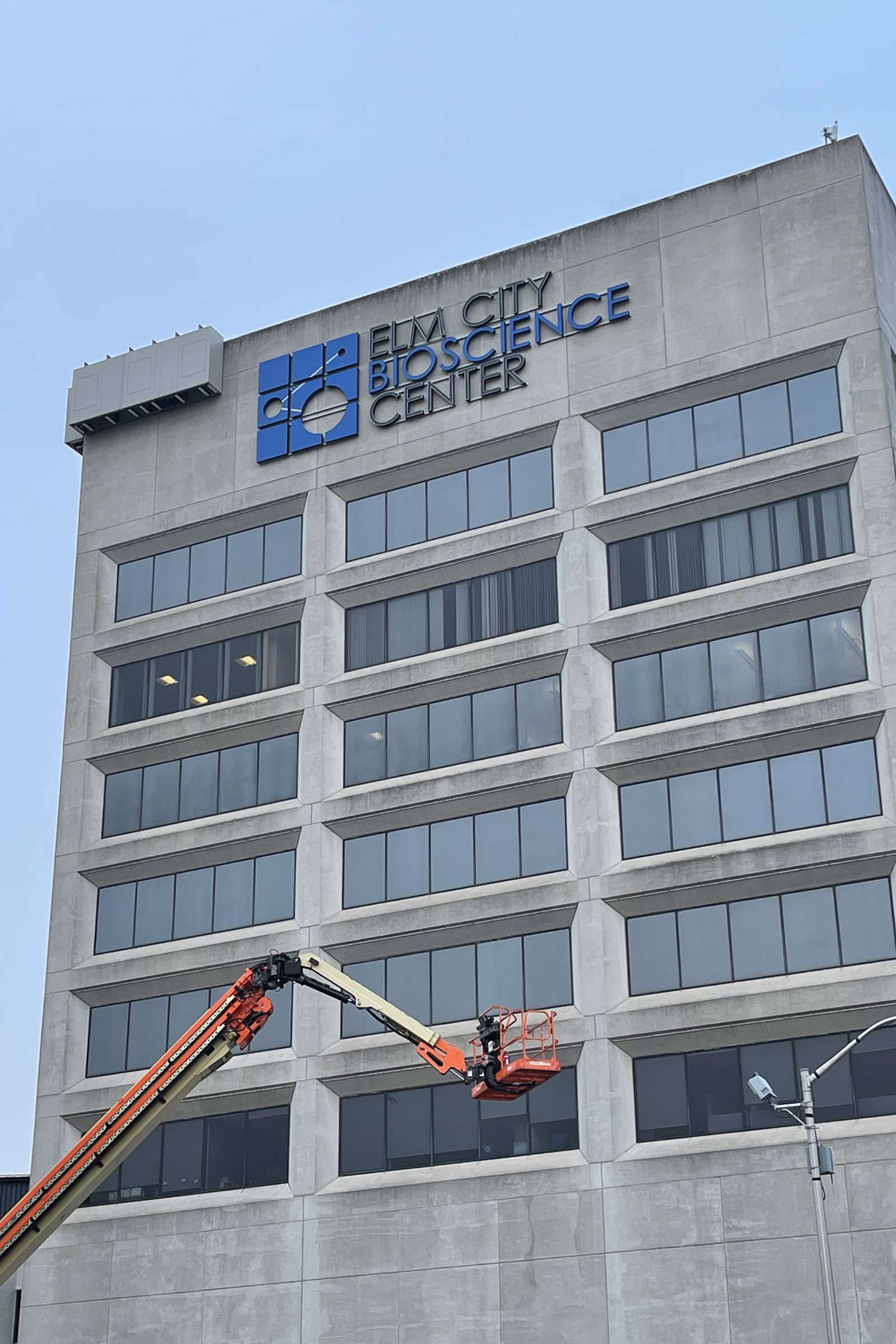 In working with the developer The Hurley Group our design team established the Elm City Bioscience Center’s identity as a modern hub for startup biotech companies in New Haven that attracts and serves small science and research biotech firms at lower risk biosafety levels (BSL), BSL-1 and BSL-2.