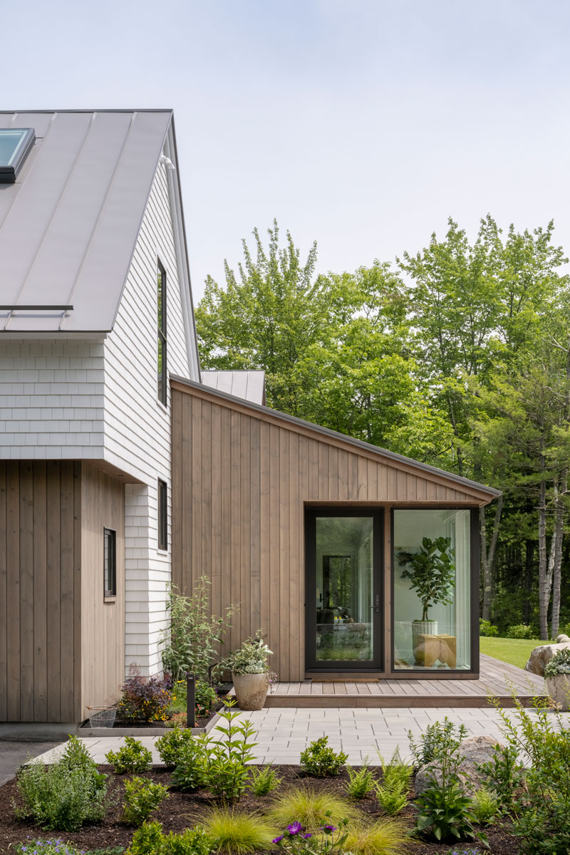 Nestled in the coastal community of Kennebunkport, Maine sits Binnacle Hill, a wooded residential neighborhood steps away from Goose Rocks Beach. Developed by Geoff Bowley of Kennebunkport-based Bowley Builders, the neighborhood features large ledge outcroppings, winding drives, and plenty of natural greenery. In 2019 Bowley transitioned from developer to client for a new project: his home.
