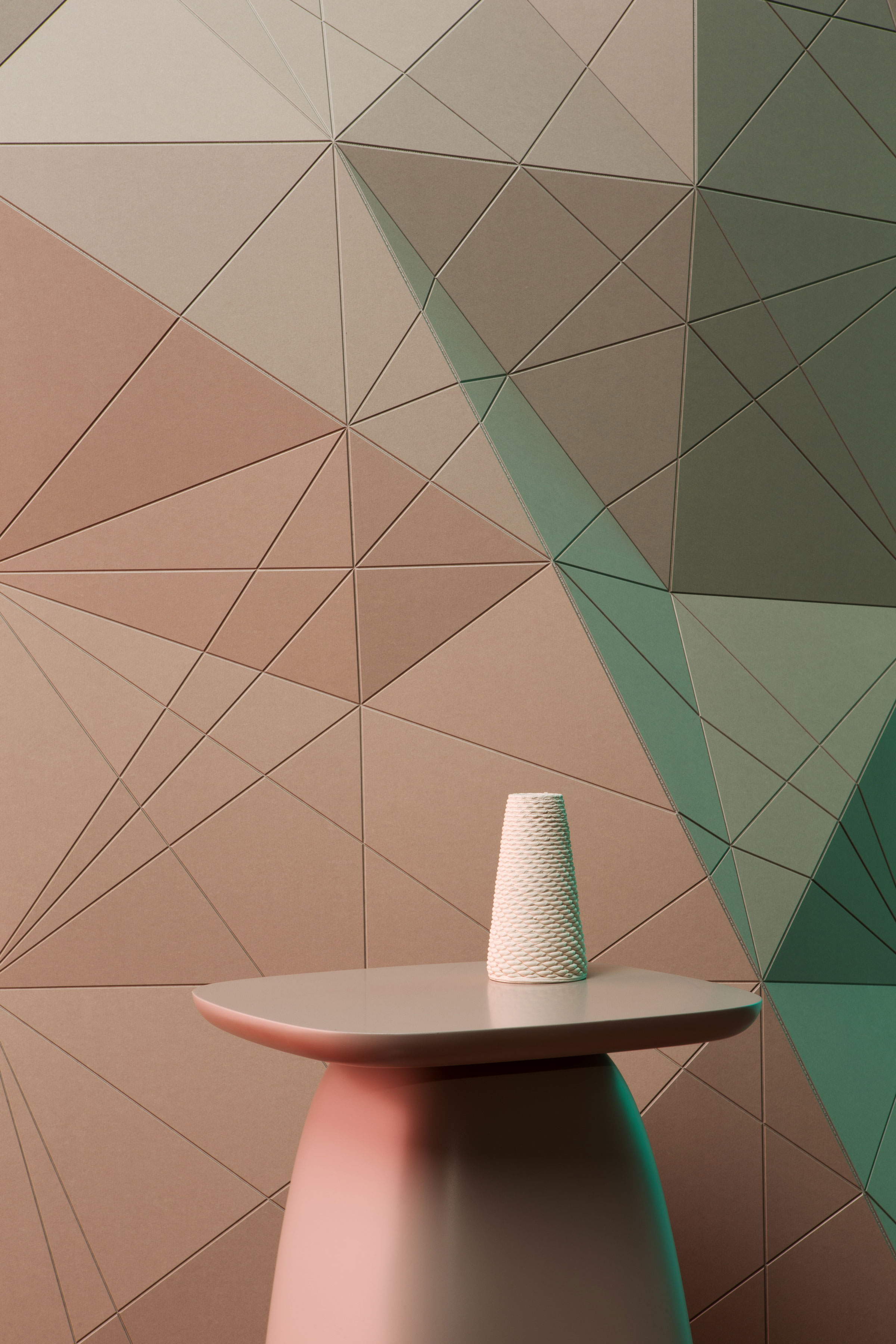 Clients can define the external layers by choosing from a wide range of materials, including wood, laminates, aluminum, and felt. The brand offers three systems: Mesh Sheets, Fold Panels, and Tailor Made.