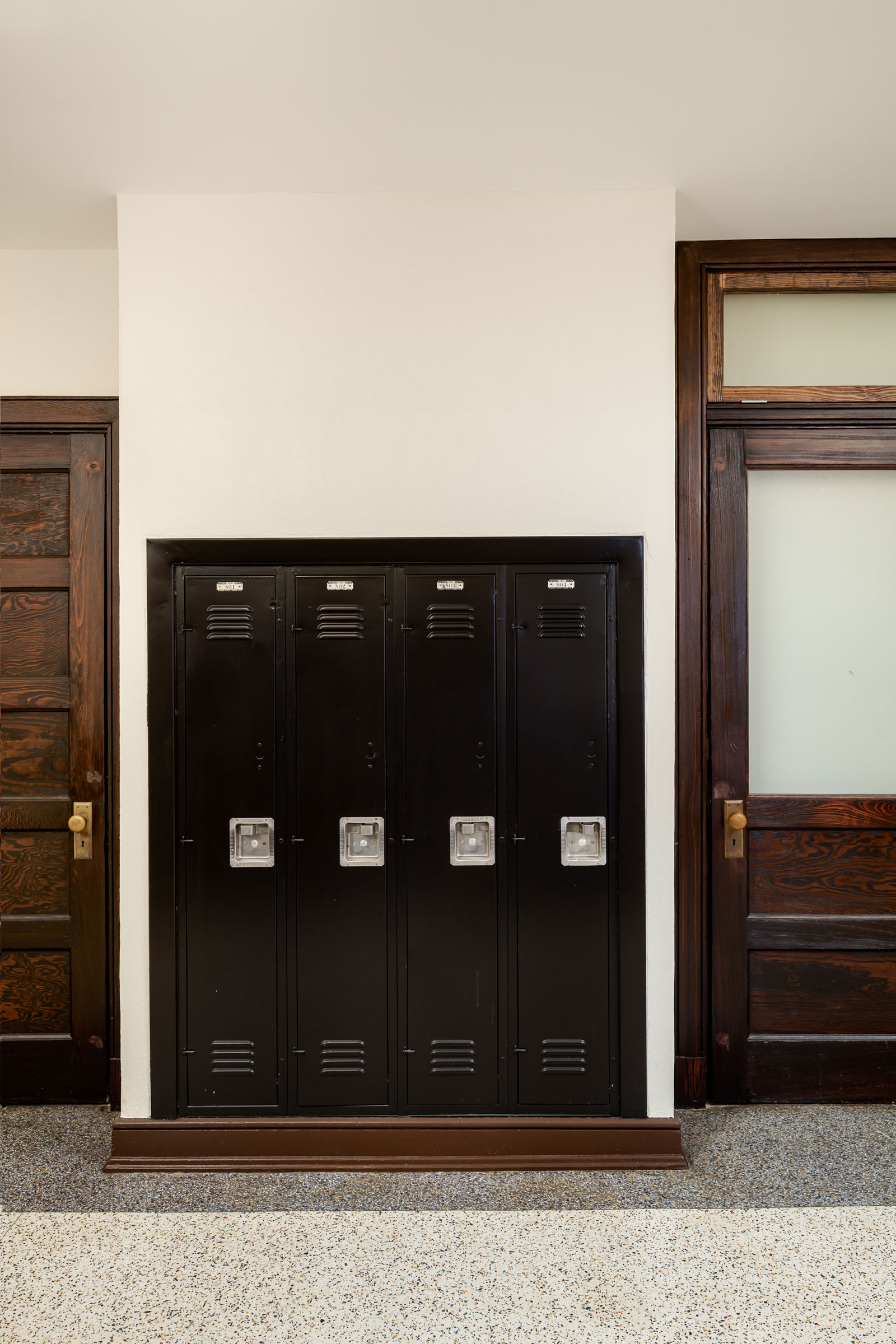 - The old lockers were saved as part of WJW’s design of Tiger Senior Apartments. Photo by J.L. Jordan Photography